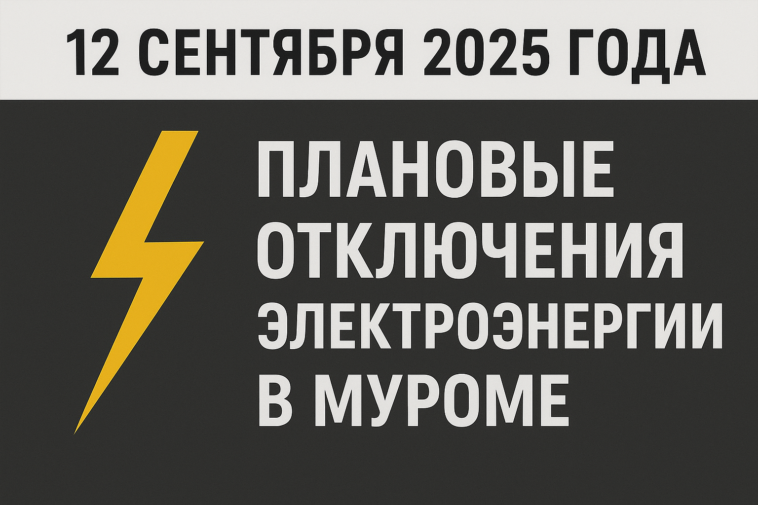 ⚠️ Внимание, жители Мурома! На 12 сентября запланированы работы на сетях электроснабжения, которые могут затронуть несколько улиц города.