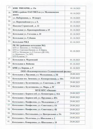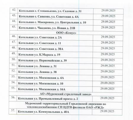К документу прилагается подробный график пуска котельных, который поможет обеспечить бесперебойное отопление в домах муромлян. Важно отметить, что своевременное начало отопительного сезона позволит избежать холодов в квартирах и офисах.